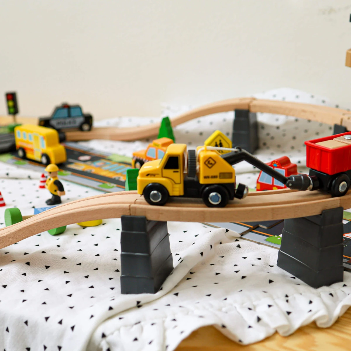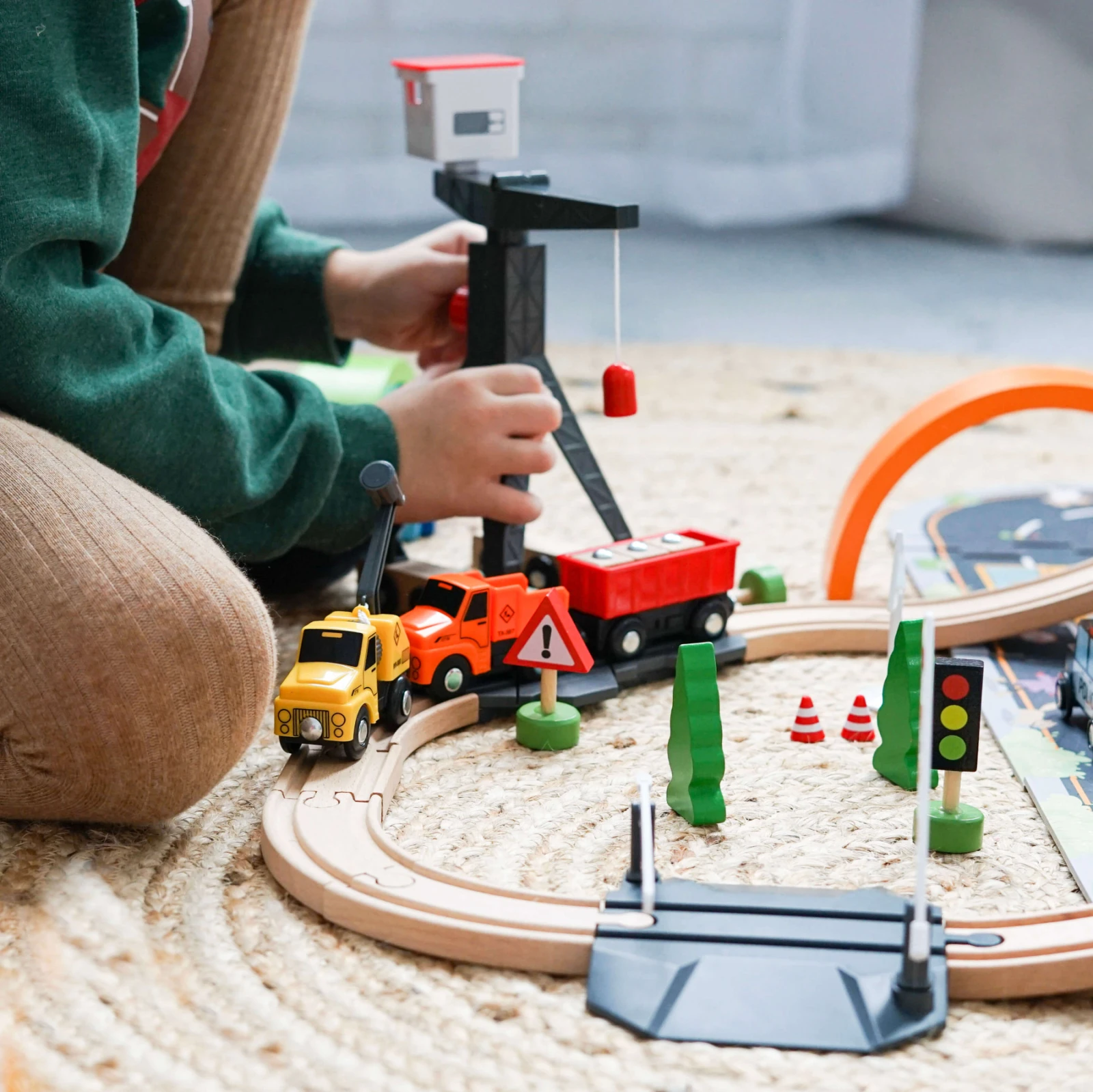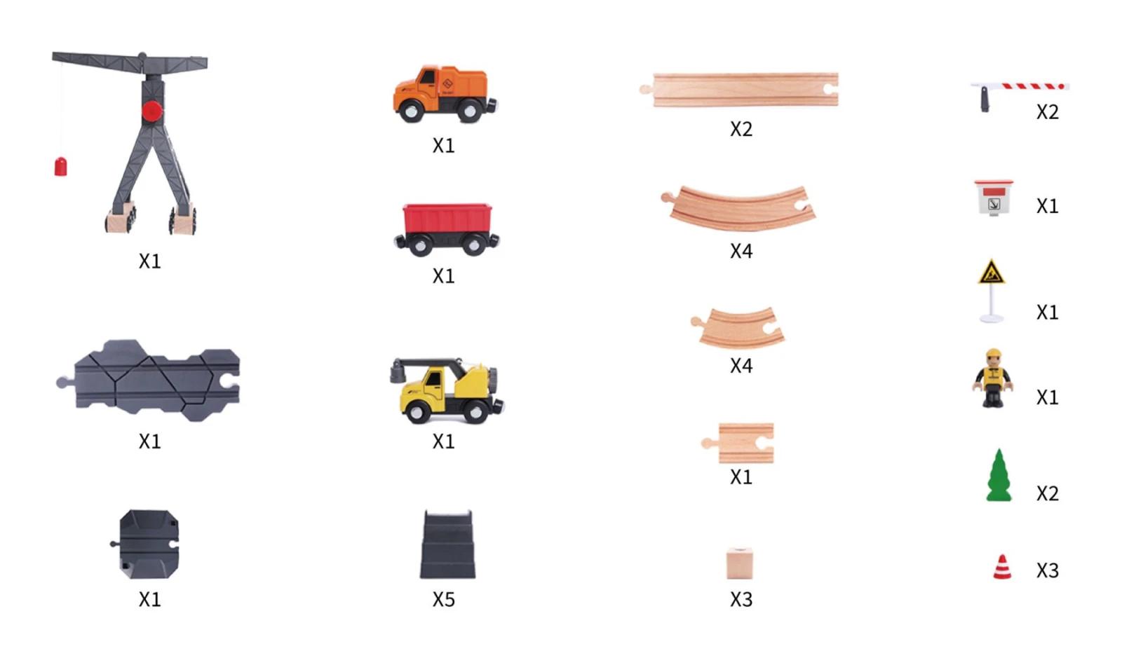 Vláčiková dráha pre malé stavbyvedúci. Originálna vláčikodráha so stavebným príslušenstvom obsahuje 35 dielov. Je ideálny pre každého, kto sa zaujíma o stavbu. Súprava skvelá na rozprávanie príbehov a rozvoj fantázie.