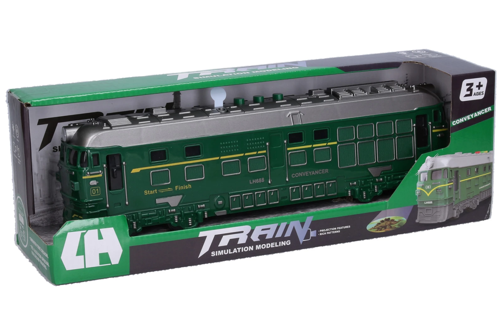 Vlak na zotrvačník s efektmi a projekciou zelený 33 cm