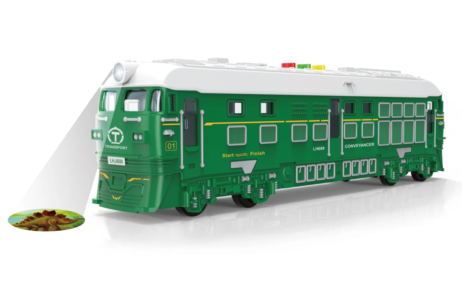 Zelený vlak na zotrvačník ponúka deťom zábavnú jazdu plnú svetelných a zvukových efektov.