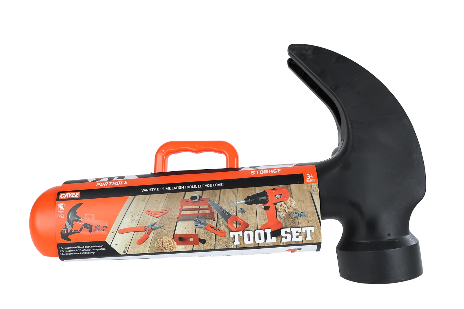 Vŕtačka na batérie s náradím v kufríku v tvare kladiva.