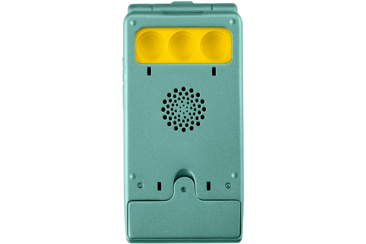 Deti si môžu otvorením a zatvorením telefónu vychutnať hravé napodobňovanie dospelých, stlačiť 12 lesklých tlačidiel na spustenie hudby, zvukových efektov a výukového obsahu, zabaviť sa silikónovými bublinkami na zmyslové hranie alebo sa prezerať v zabudovanom zrkadle, ktoré podporuje zrakovú stimuláciu. Navyše pomocou tlačidla glóbusu si môžete okrem slovenčiny vybrať maďarčinu, angličtinu, poľštinu alebo slovenčinu.
