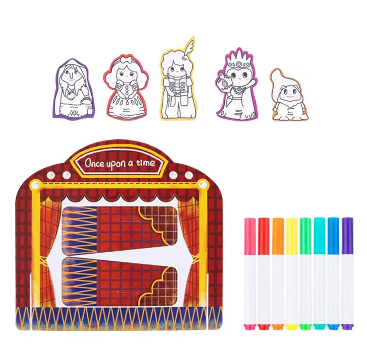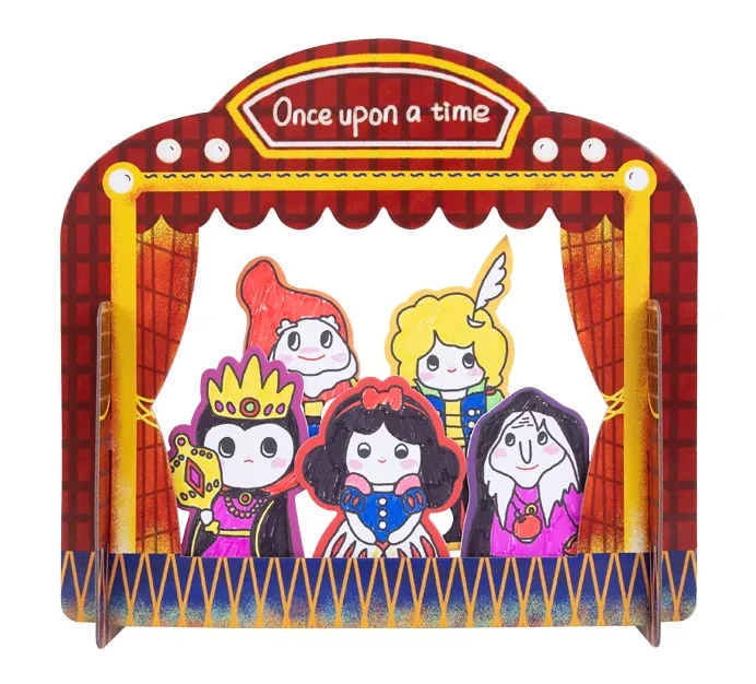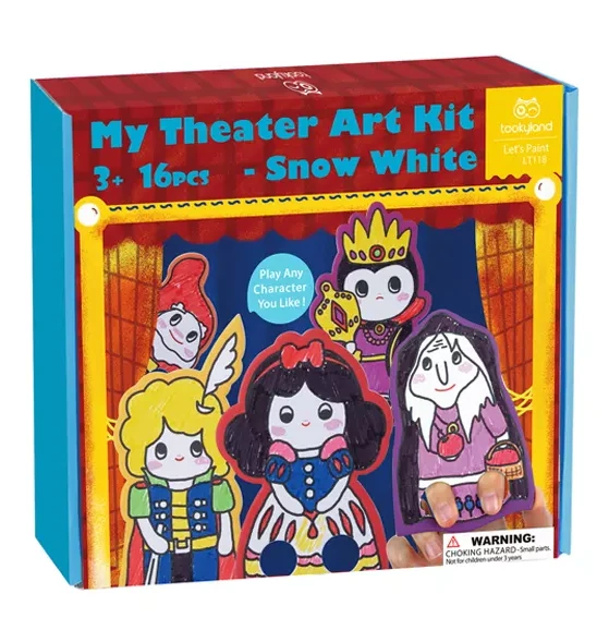 Javisko pripravené, scéna môže začať! Divadelná kreatívna sada Snehulienka od Tookyland obsahuje kulisy aj s 5 papierovými bábkami s postavičkami z rozprávky Snehulienka.