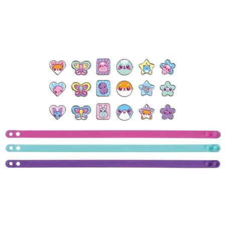 Balenie obsahuje: tri plastové náramky farby ružovej, modrej, fialovej a 18 rôznych druhov doplnkov s motívom MINI MYMY.