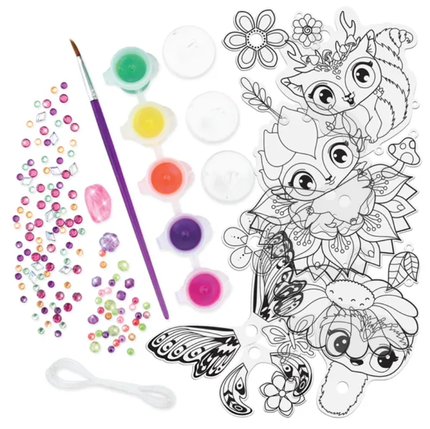 Súprava na tvorbu 3 talizmanov. Obsah balenia - 15 dielikov pripravených vyfarbenie a ozdobenie, 5 farieb na sklo, štetec, korálky a špagát, rôzne kamienky, 3 prísavky. Tiež obsahuje návod a príbehy animušov.