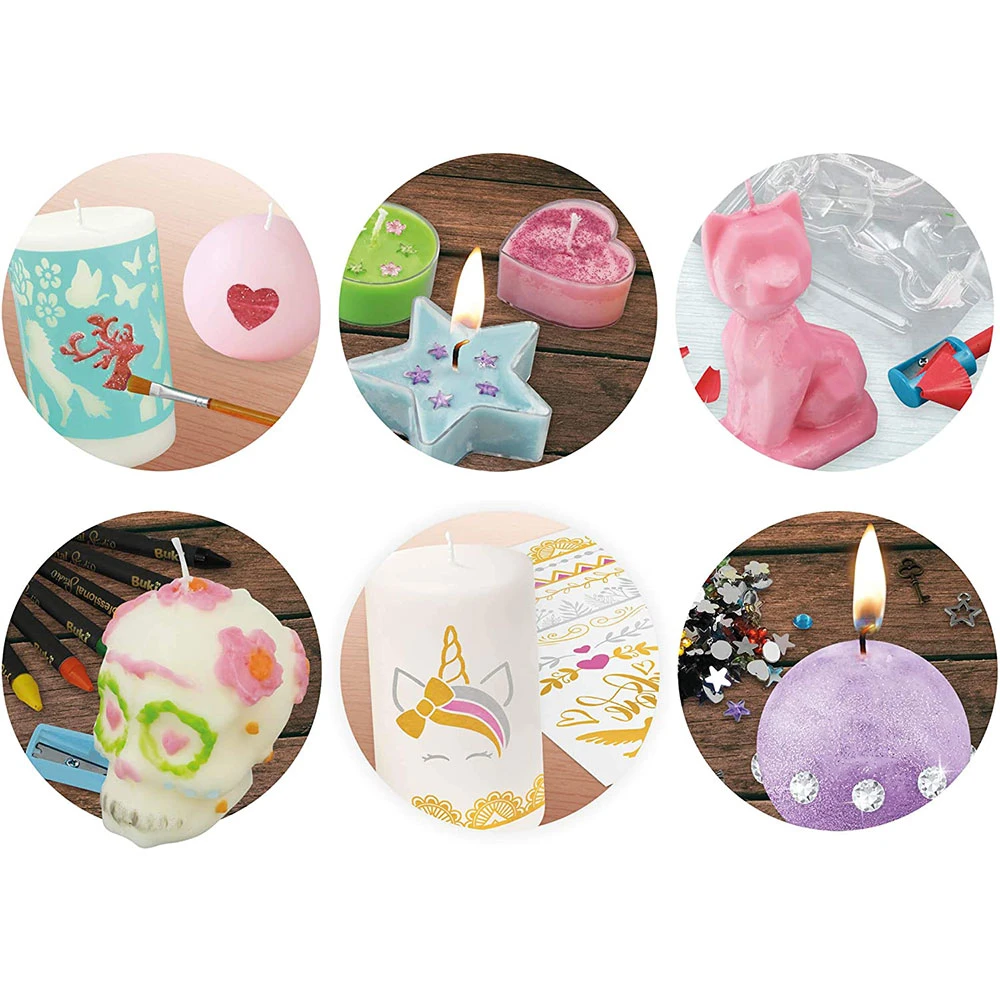 Sada obsahuje formy na výrobu 10 rôznych modelov sviečok. Na dekorovanie sviečok môžete použiť trblietky, kamienky, farebný vosk, potlače a rôzne nástroje. Do sviečok je možné zataviť aj prívesky a iné drobnosti, čo z každej sviečky urobí zaručene originálny darček.