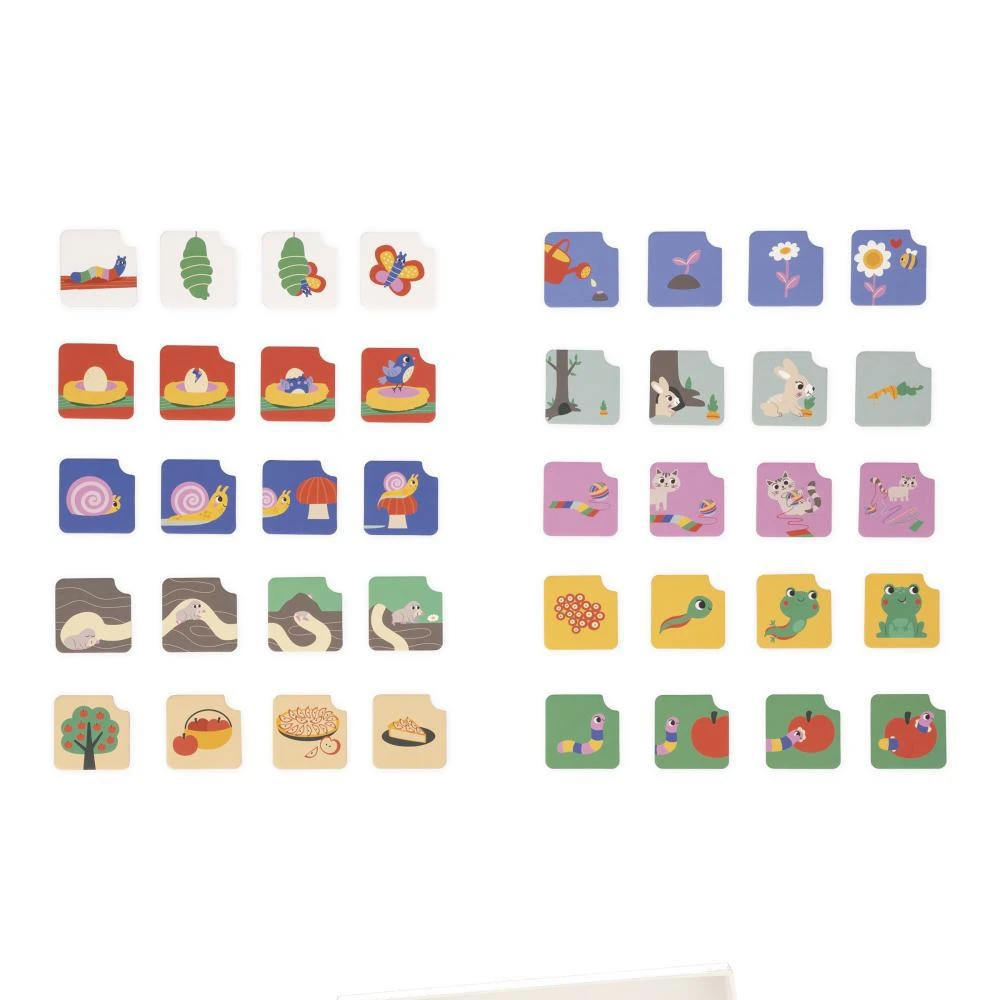 Ako vzniká motýľ? Ako sa semienko premení na kvet? Sprevádzajte svoje dieťa pri objavovaní prírody pomocou sekvenčných kariet. Cieľom hry je nájsť chronológiu každej akcie. Hra obsahuje 10 akcií po 4 etapy, tj 40 kariet, ako aj drevenú základňu. Vďaka samostatnému uvažovaniu sa vaše dieťa naučí chronologicky zaraďovať akcie, rozvíjať svoje myslenie a pozornosť. K dispozícii je aj systém autokorekcie. Alternatívou je aj spolupráca s rodičom, kde môžete sprevádzať svoje dieťa pri učení: nechajte ho položiť kartičky na základňu a potom vám vysvetlí, ako sa scéna vyvíja. Hra vyrobená z dreva FSCTM a kartónu. Edukačná hra vyvinutá v spolupráci s učiteľkou pre deti od 3 rokov.