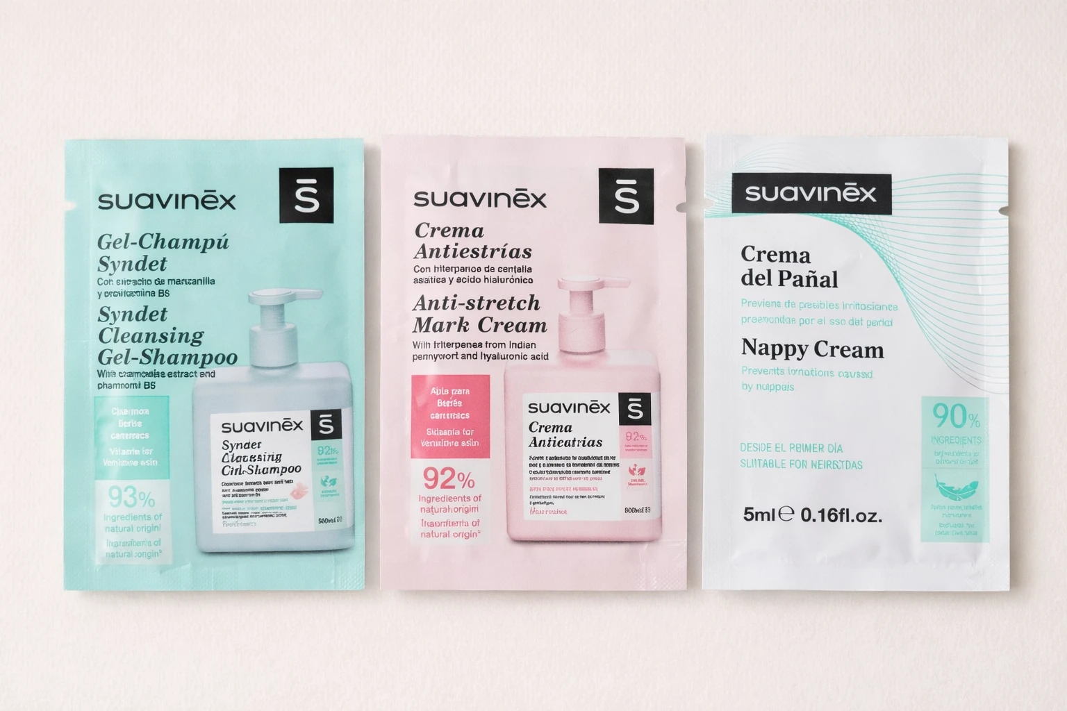 Vzorka detskej kozmetiky Suavinex. Tešiť sa môžete na detský šampón na telo aj vlásky. Určený od prvých dní života. Bez sĺz alebo Krém na zapareniny Suavinex alebo Krém proti striám. Dodávame podľa aktuálnej skladovej zásoby.