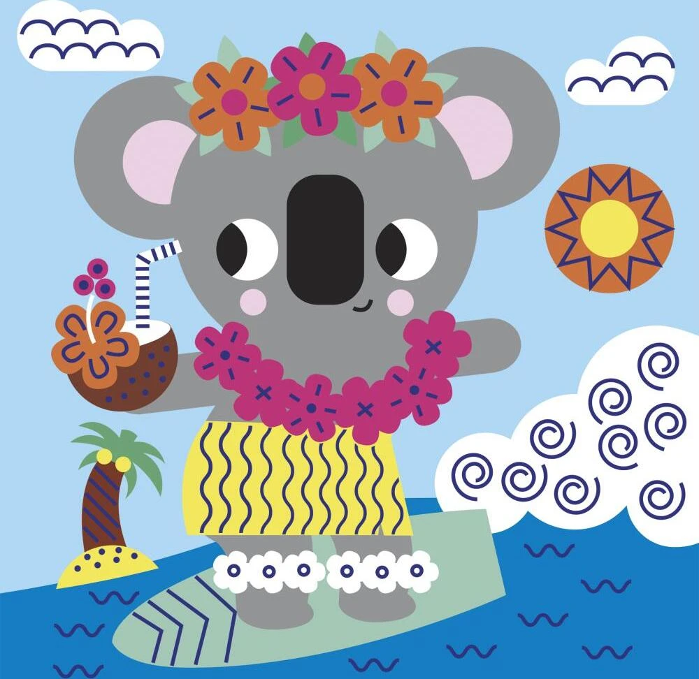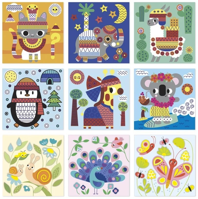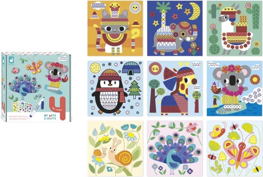 Táto kreatívna súprava je súčasťou rady My Arts & Crafts, ktorá sa môže pochváliť mimoriadne roztomilými zvieratkami v pastelových farbách a predstavuje malým deťom prvé praktické remeselné činnosti. S touto kreatívnou sadou sa vaše dieťa zabaví dokončením farebných obrázkov na tému zvieratka: lama, slon, tučniak, motýľ, páv či koala.