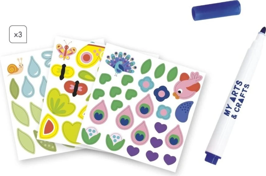Obsah: 3 obojstranné stierateľné pozadie, 3 klasické pozadie, fixka a nálepky. Cieľom je dokončiť obrázky kreslením a nalepením nálepiek. Kreatívna sada Janod rozvíja a podporuje tvorenie, zručnosť a predstavivosť u detí. Kreatívne hračky pre deti nezaberajú veľa miesta, sú vhodné na cesty aj na doma, v zdraví aj chorobe a zabavia deti na dlhé hodiny. Tvorenie rôznymi technikami podporuje sústredenie a koncentráciu, prirodzené skúmanie a výtvarné schopnosti.