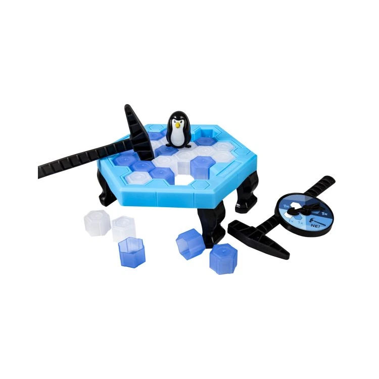 Zatočte kolieskom a potom z ľadovej plochy vyklepnite zodpovedajúce ľadové kocky podľa toho, kam ukazuje šípka. Ten, komu tučniak spadne prehráva a hra končí!
