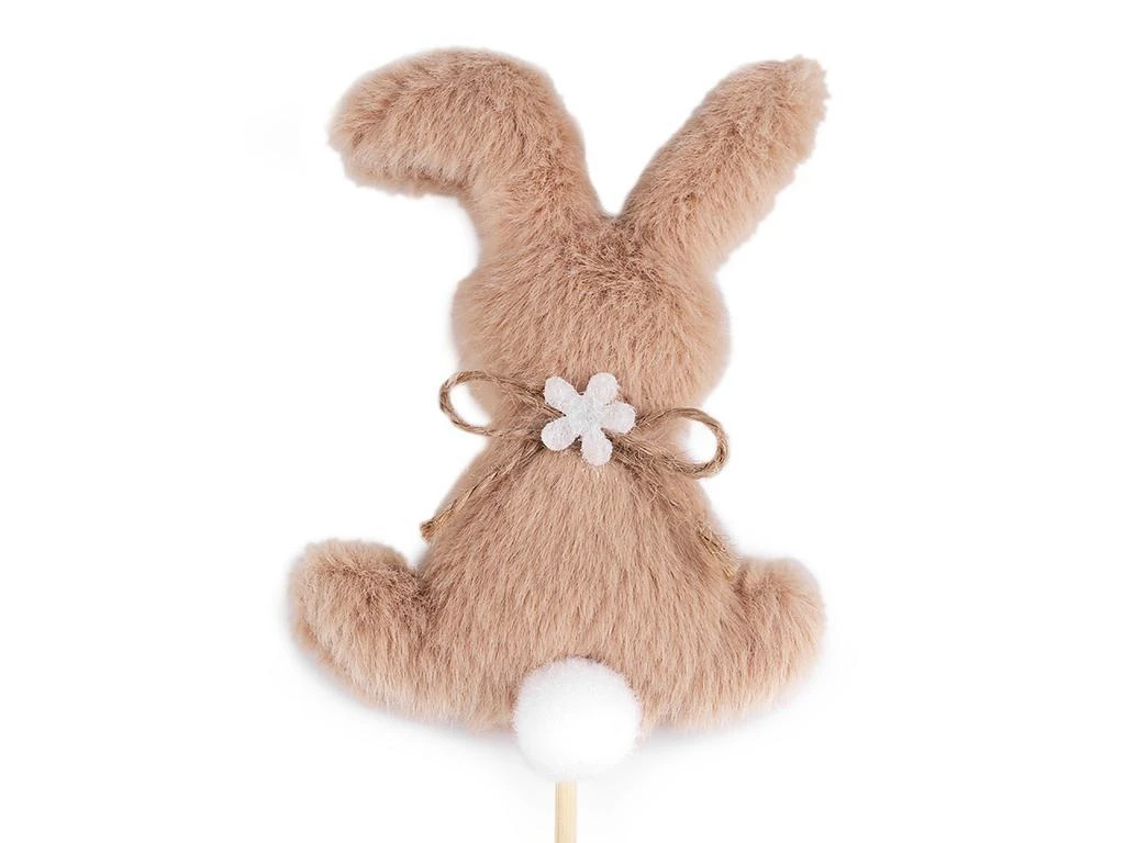 Dekoračný zajačik je plyšový, hebký na dotyk a pôsobí roztomilo. Oživí vám kvetináče, hrantíky a rôzne veľkonočné i jarné aranžmány.