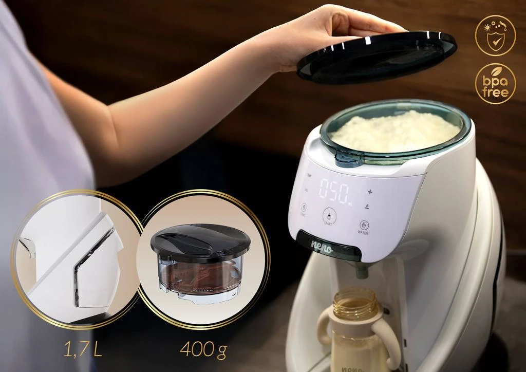 - LED lampa: LED svetlo uľahčuje nočné kŕmenie bez potreby varenia alebo merania. S jedným tlačidlom pripravíte mlieko rýchlo, aj keď vaše dieťa často vstáva v noci.