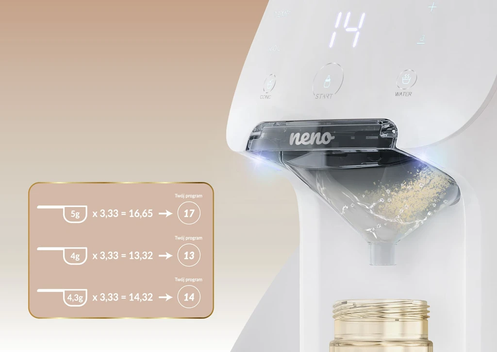 Neno Primavera je prístroj na prípravu dojčenského mlieka, ktorý vám ušetrí vzácny čas a poskytne maximálne pohodlie pri každom kŕmení. Kompatibilný s väčšinou fliaš a upravených mliečnych zmesí, rýchlo zahreje vodu na ideálnu teplotu až do 70 °C. S intuitívnym dotykovým panelom a pokročilými senzormi je každodenné používanie ešte jednoduchšie a pohodlnejšie.