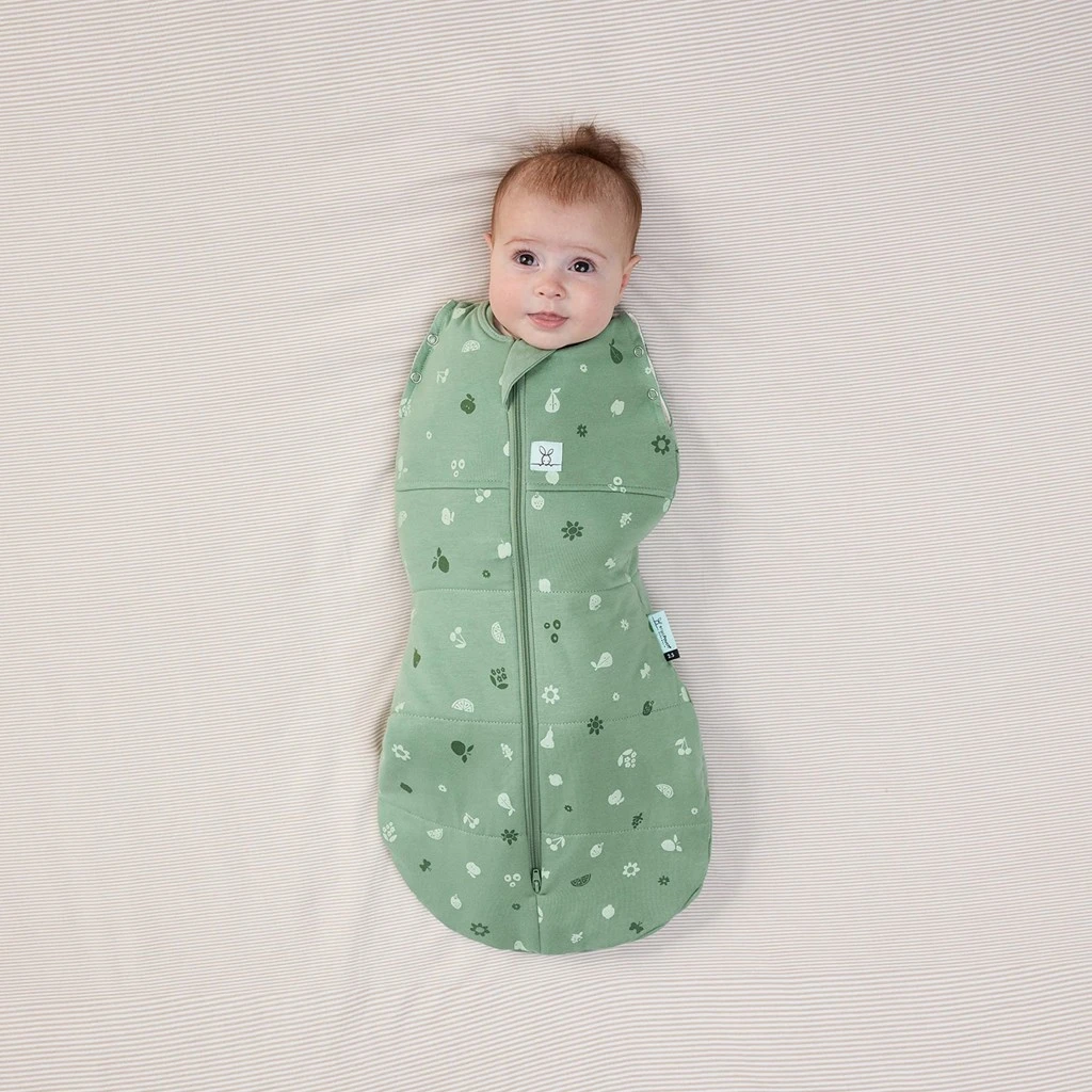 Vak Cocoon Swaddle je vyrobený a vyplnený organickou bavlnou s certifikátom GOTS, s elastanom vo vonkajšej tkanine a bambusom v podšívke. To znamená, že je dostatočne pevný, aby obmedzil úľakový reflex a zároveň umožňuje rozťahovanie a pohyb pre zdravý rast. Roztiahnutosť umožňuje väčšie pohodlie a dieťatku umožňuje pohybovať rukami do polohy, v ktorej sa samo usadí vo vnútri zavinovačky. Mäkká, priedušná organická bavlna a bambus sú certifikované ako netoxické, farbené farbivá na báze vody a šetrné k pokožke novorodencov a pokožke so sklonom k výskytu ekzémov. Zips chráni aj jemnú pokožku vášho dieťaťa a praktické cvočky na ramená umožňujú premeniť Cocoon zo zavinovačky s rukami na spací vak s rukami, keď dieťa vykazuje známky prevracania. Zvonovitý tvar je schválený Medzinárodným inštitútom pre dysplázu bedra ako zdravý pre bedra a podporuje správny vývoj bedrových kĺbov a ramenných kĺbov. Obojsmerný zips umožňuje rýchlu a jednoduchú výmenu plienky počas spánku s minimálnym narušením.