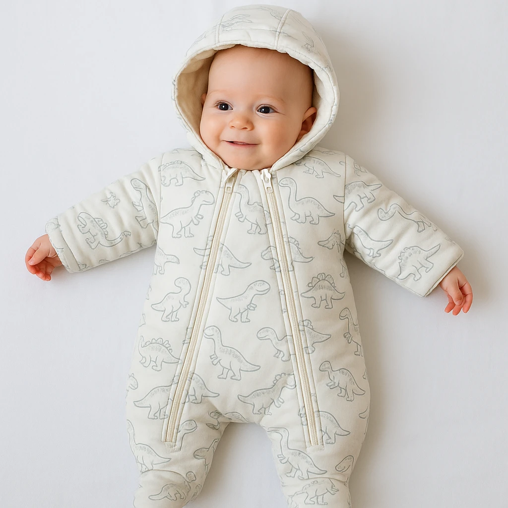 Zimná kombinéza s kapucňou podšitá Dino Baby Service. Kvalitná česká výroba. Vhodné do autosedačiek či kočíka. Teplučká, vhodná na zimu