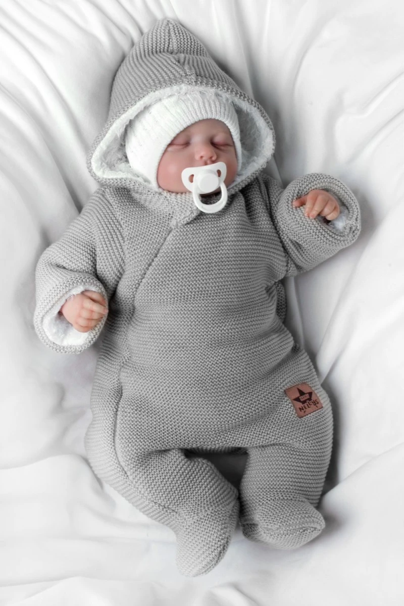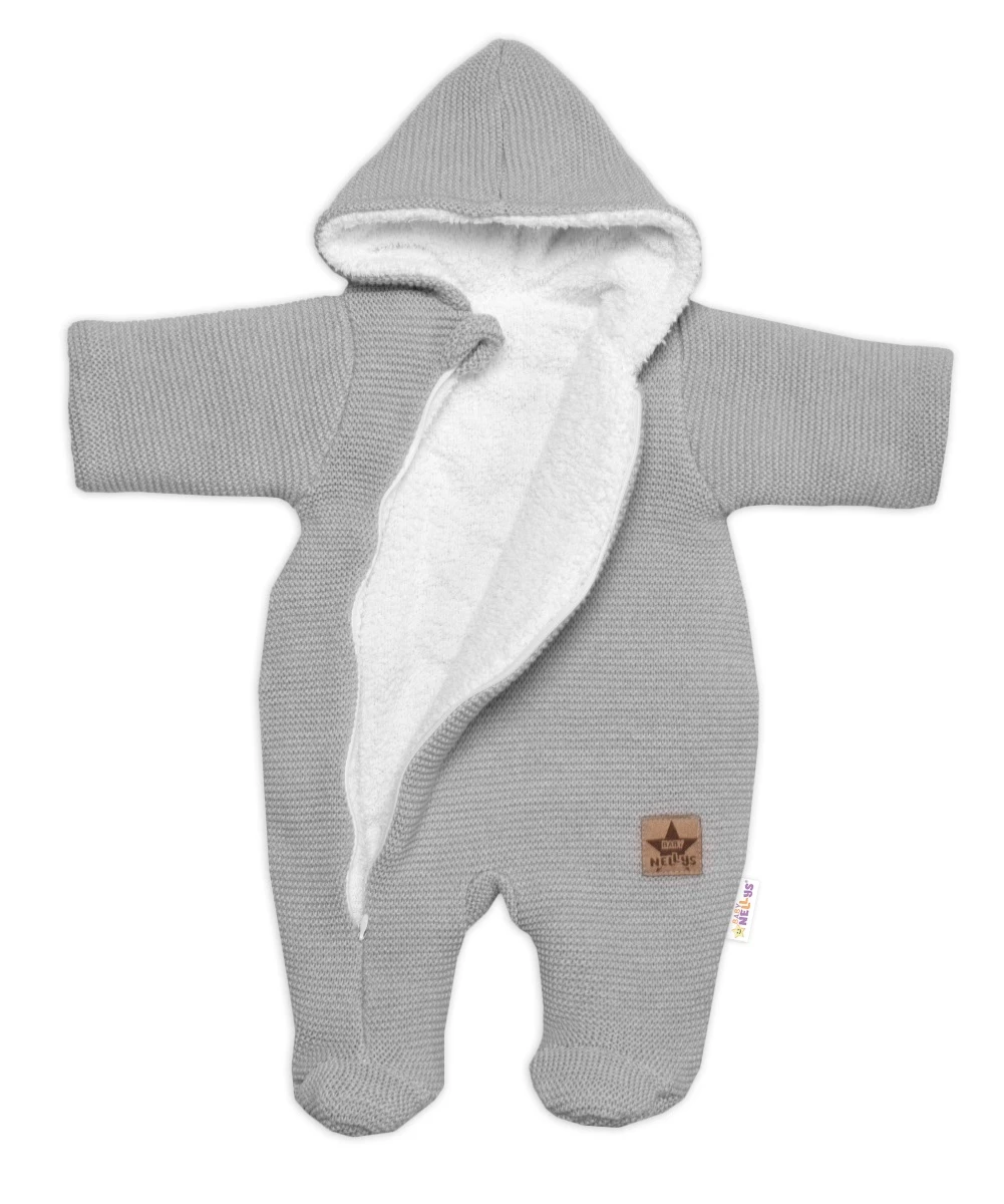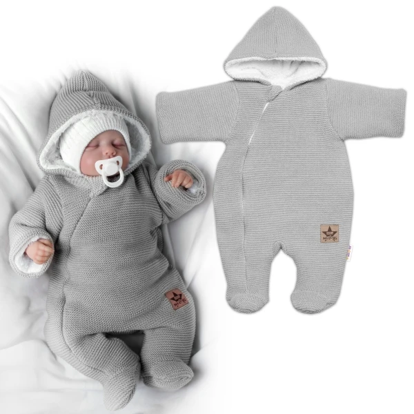 Zimná pletená kombinéza/overálok s kapucňou svetlo šedá Veľ. 62 Baby Nellys