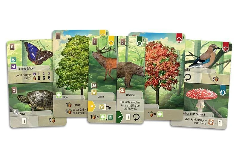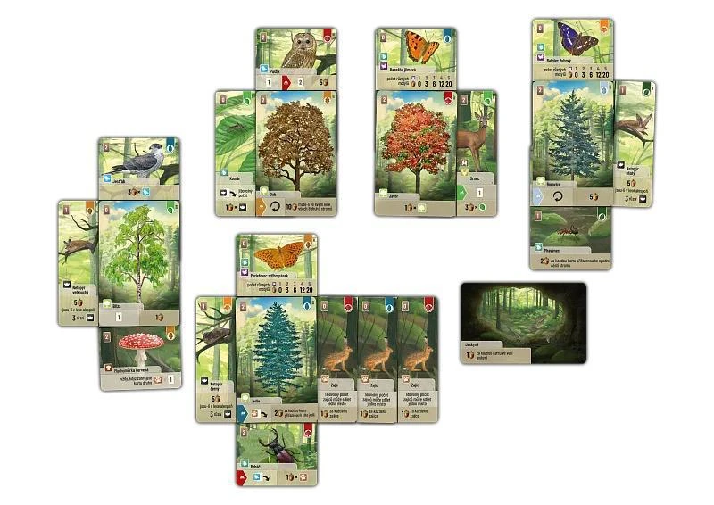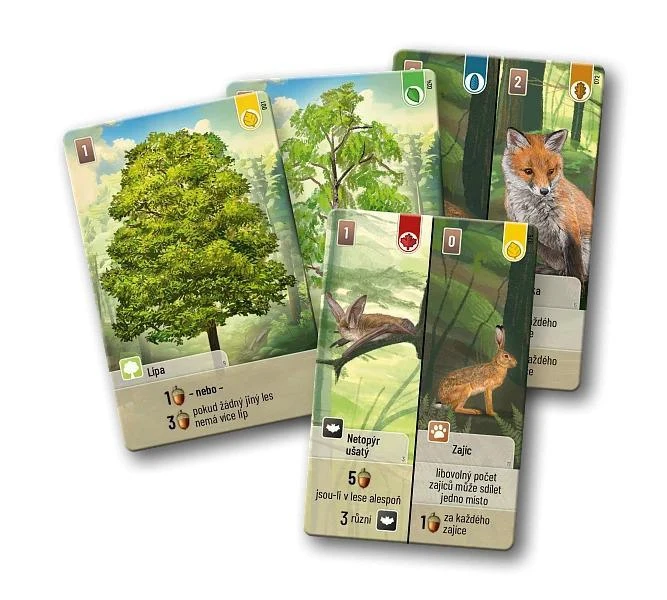 Delené karty obsahujú rôzne lesné organizmy: zvieratá, rastliny a huby. Keď hráte delenú kartu, musíte ju priradiť k prázdnemu miestu na zodpovedajúcej strane stromu vo svojom lese. Ak chcete zahrať zviera, ktoré sa nachádza na karte vľavo, musíte túto kartu umiestniť na ľavú stranu karty stromu, a to zasunutím jej pravej nepoužitej časti pod kartu stromu. Rovnaký postup platí pre zvieratá na pravej strane, hore aj dole.