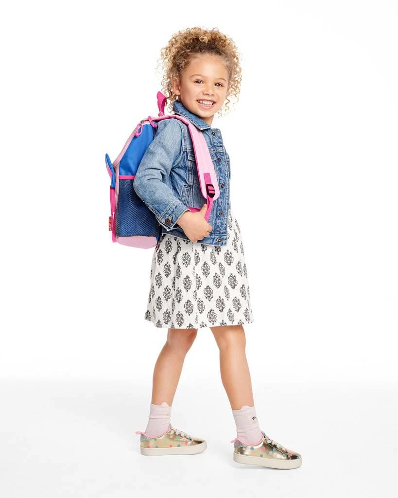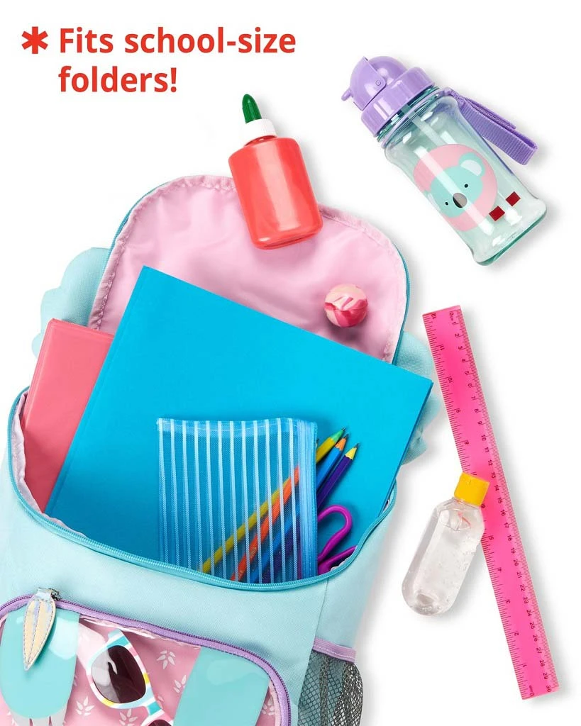 Krásny batoh ZOO od Skip Hop. Veľkosť presne pre školské učebnice a zošity, písacie potreby, tašku na desiatu a iné pomôcky. Roztomilý batoh pre veľké deti sa hodí na všetko potrebné, čo vaše dieťa potrebuje v triede aj mimo nej. Vďaka širokému a ľahko prístupnému otvoru a priehľadnému prednému vrecku je možné zabaliť a mať na dosah potrebné veci, zatiaľ čo sieťované vrecko na fľašu zaistí, aby boli nápoje po ruke.