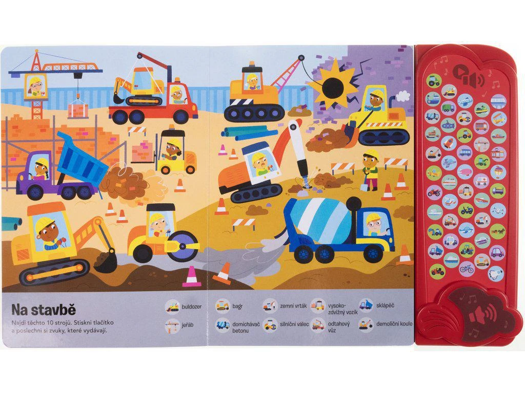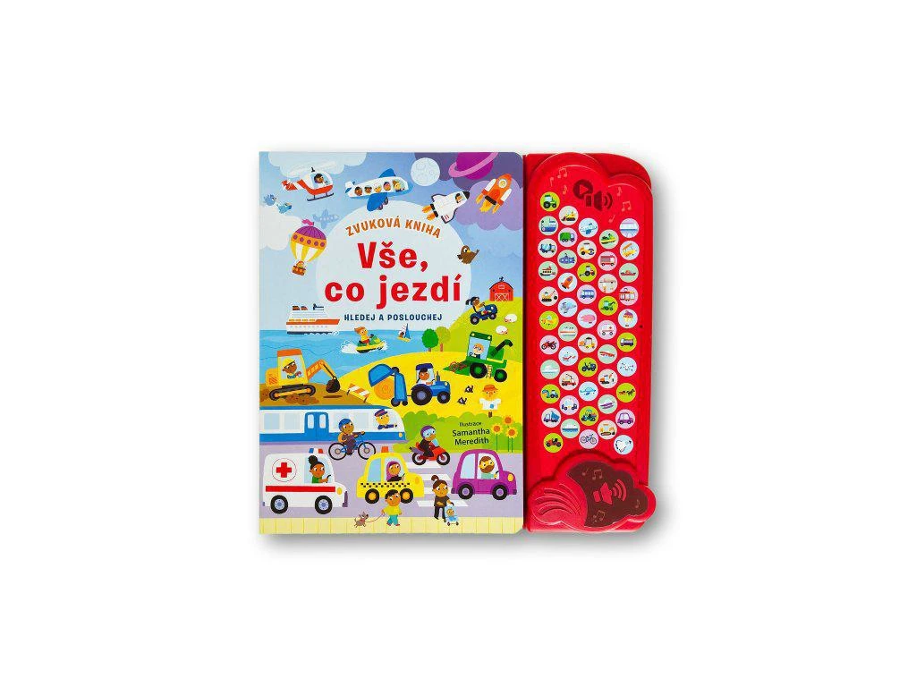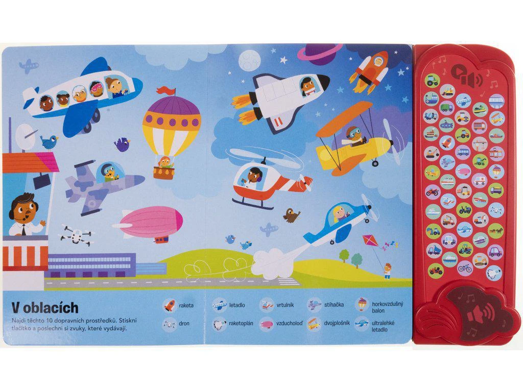 Poznaj rôzne dopravné prostriedky v tejto zvukovej knihe s 50 zvukmi. Hľadaj vozidlá a po stlačení tlačidla si vypočuj zvuky, ktoré vydávajú.